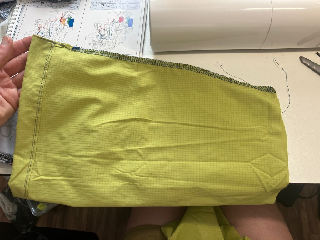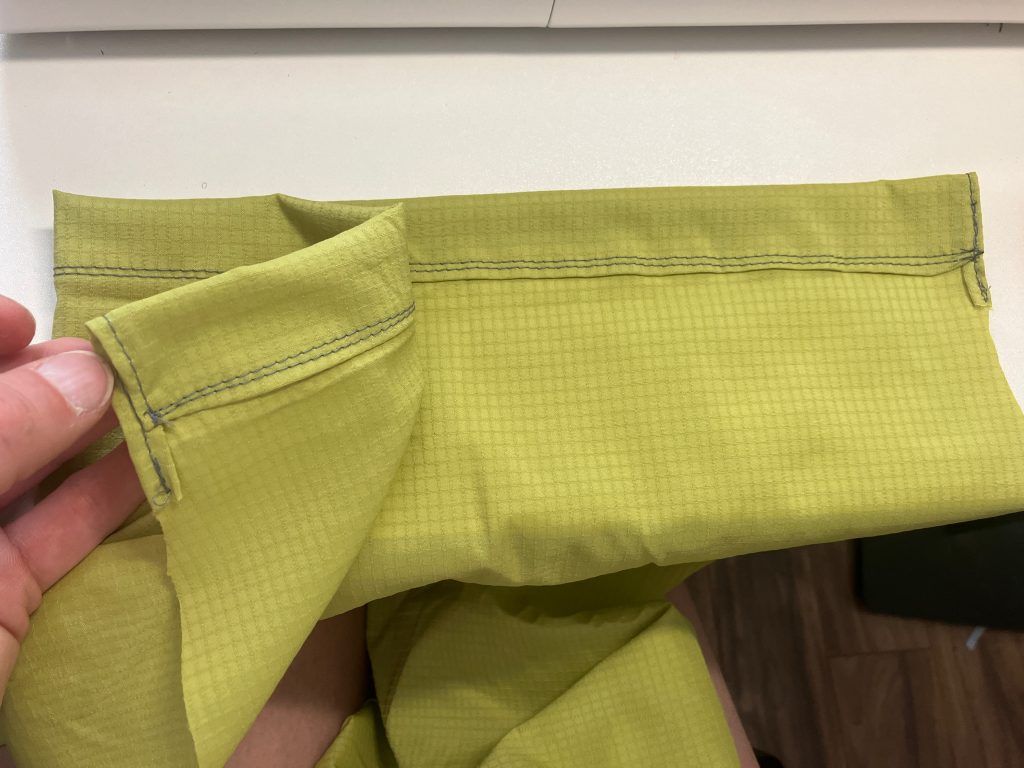 Finish the top by threading elastic through the channel and adding a small cord lock from Zpacks.