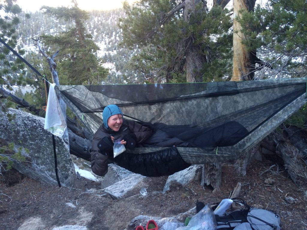Now, my sleeping system changes over the year and depends on where I’m going. And the most critical thing is that I’ve figured out what kind of sleeper I am. Even for the same conditions, people sleep differently. The differences between sleeping styles are the secret that no one told me when I was starting: that some people sleep hot and others cold, and everyone needs different levels of padding from the ground. And some of us sleep better in a hammock.