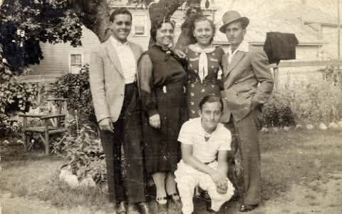 A favorite photo of mine. Sometime in 1945. My grandfather on the right and my great-uncle on the left just returned from the war. My great-grandmother is all smiles. Her two boys survived.
