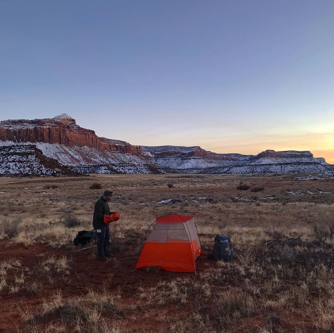 Esp when it is December, the night is coming soon, and there is a chill in the air, with sleet coming down, and we find ourselves setting up our Lunar Duo in the rocky soil of the Colorado Plateau. This tent served me well over the years, but the large footprint and type of setup make it hard to find an ideal spot to call home, especially as Joan and I tend to walk all day. More challenging to find a suitable campsite as early evening approaches. Quite a different approach from how I used the Lunar Duo in the past.