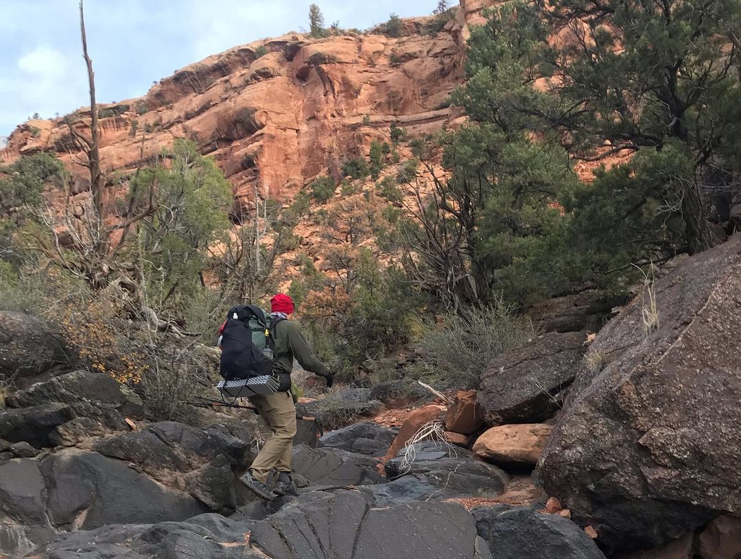An October 2021 trip I took with Joan in Dominguez Canyon. You’ll hike right by this wash that leads to Dominguez Creek and a pretty campsite. I take different gear solo than with Joan. PCO Joan.
