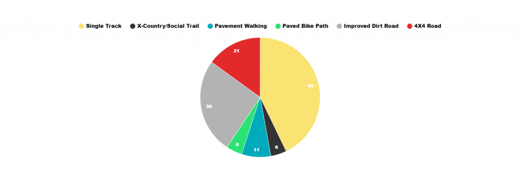 - As for the mileage breakdown of the route, this pie chart should answer the questions :