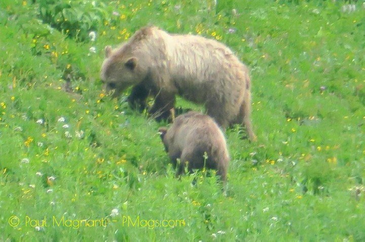 I spotted a mother bear and a cub in the distance. They did not notice me as I snapped some photos. They ambled up the mountainside before I could take more photos.