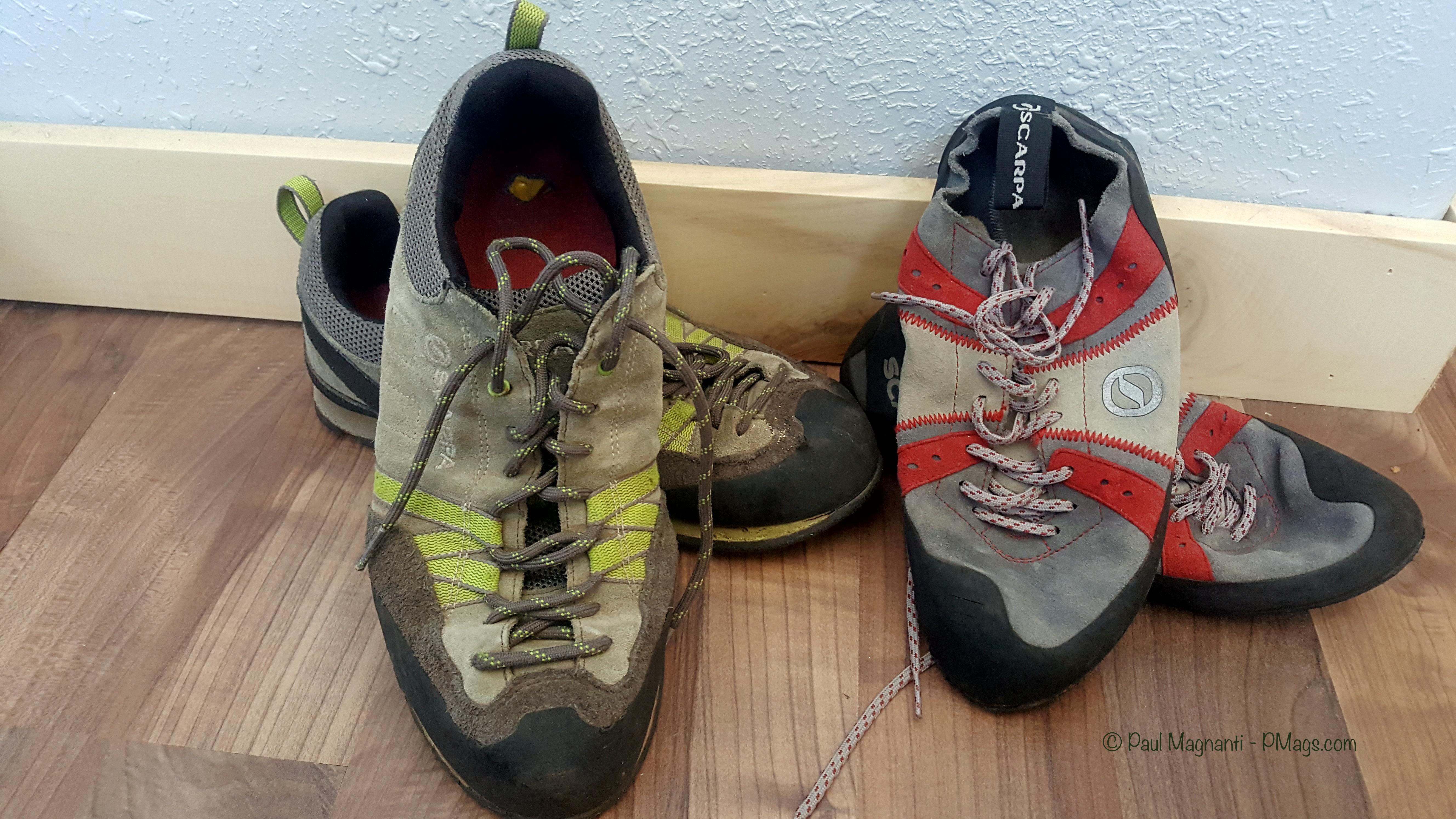 For these after-work climbs, I purchased a version of the Scarpa Helix. Described in more than one review as an all-purpose shoe suitable for beginners or those who need a decent “quiver of one” type climbing shoe.