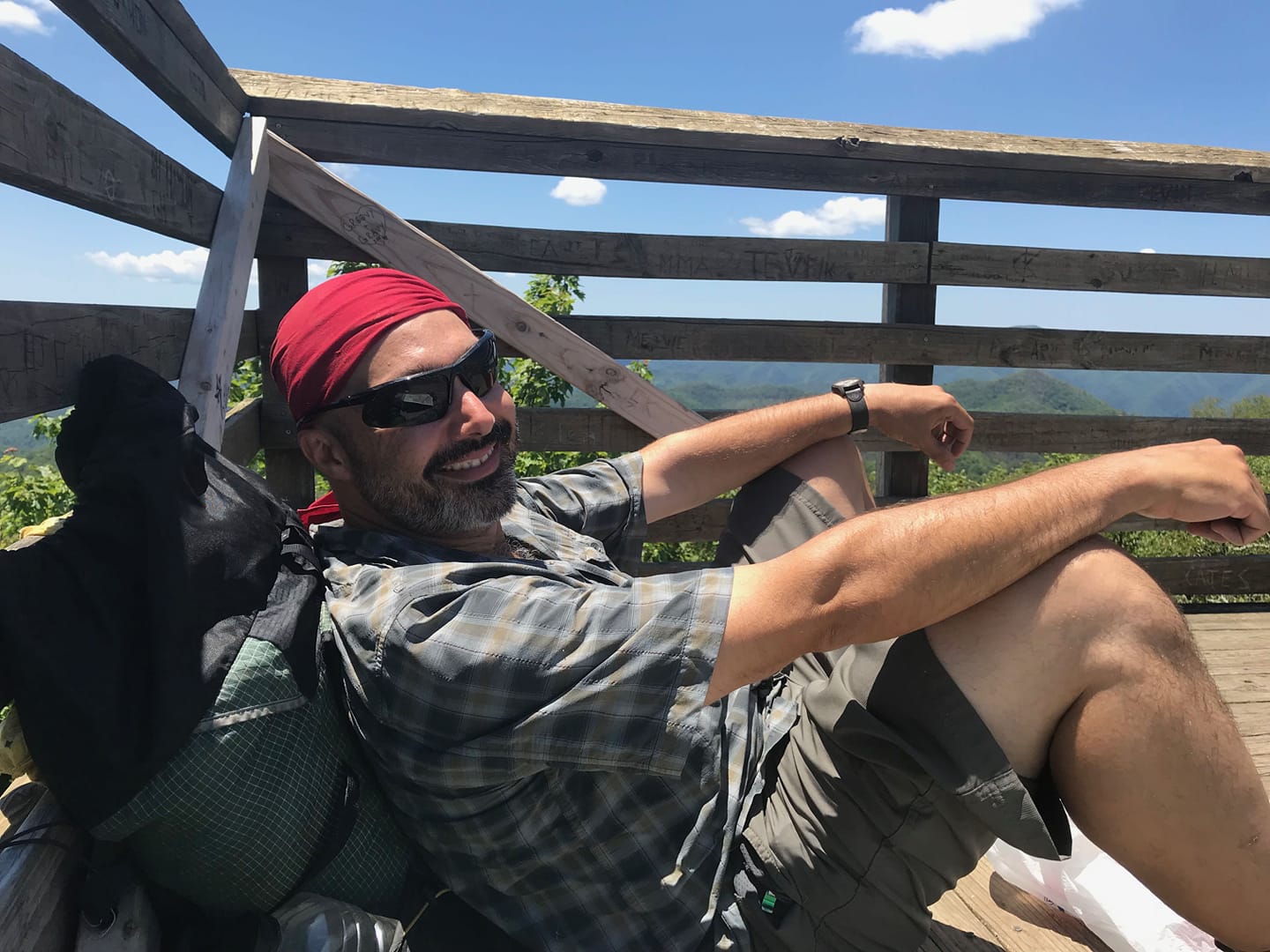 And because I am follically challenged, I lost natural wicking via any hair on my head. So a simple bandanna provides the same functionality. I like using a large one for added versatility too. And, esp in lower treed areas, I can look like an Italian-American pirate! (Instead of “Arghhh!”, I say “HEY! with the appropriate motion of my hands.)