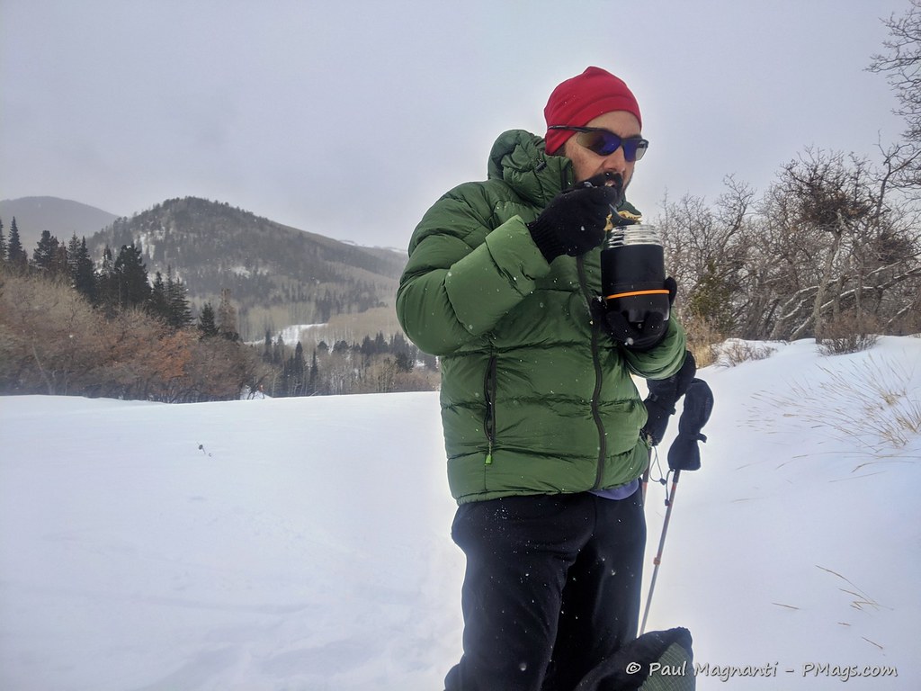 For very cold weather camping or overnight ski tours, I’ve had and used the same polar fleece balaclava for a while now. Simple, dries quickly for its thickness, very warm, and versatile. My beater down coat does not have a hood, so this balaclava serves as a useful adjunct to that garment. Though it weighs 4 oz, it does pack much warmth into a small package. I like it vs. a down hood when moving as I can use it for active use when it is especially cold as in the sub-zero morning temps, as in the photo below.