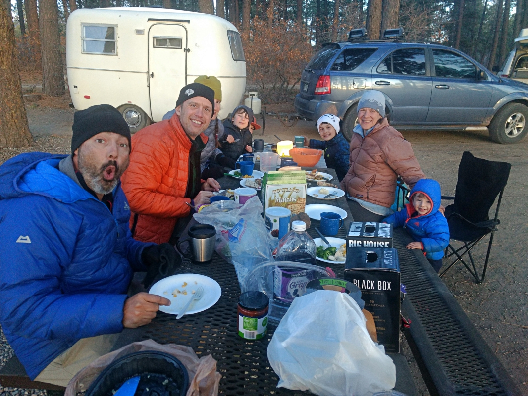 Closer view of the Scamp at a recent Seder dinner while camping. A good Italian boy does quite well at *any* holiday. PCO Mike DiLorenzo.