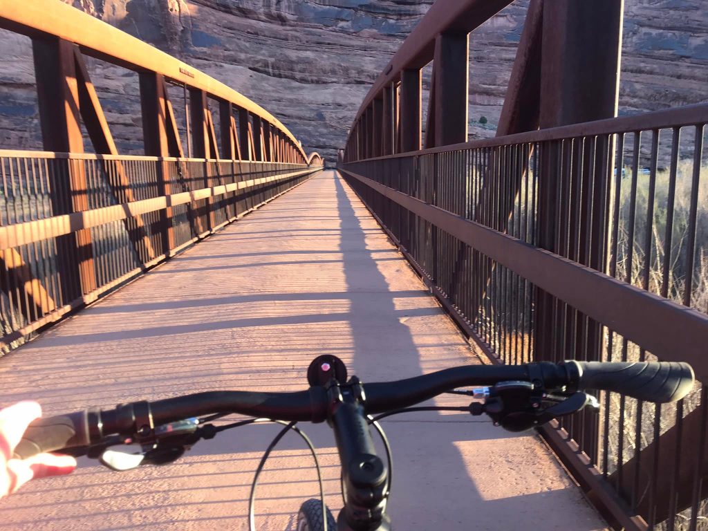 Joan commutes almost daily by bike through red rock canyons and over the Colorado River to Arches. Not a bad morning!