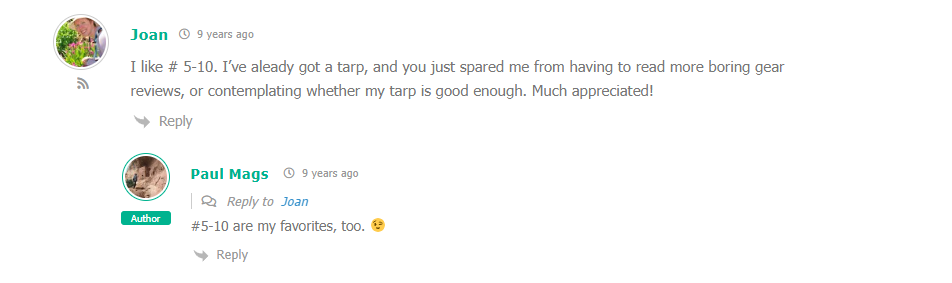 I like # 5-10. I’ve aleady got a tarp, and you just spared me from having to read more boring gear reviews, or contemplating whether my tarp is good enough. Much appreciated!