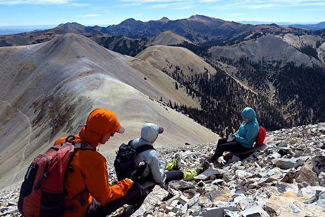 We enjoyed two days of backpacking, mixed in with some camping and day hiking. We climbed two peaks in the range, marveled at the aspens, and enjoyed the tundra walking. All immersed in the short and sweet Fall season.