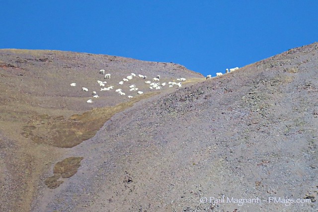 Mountain goats on the ridge between Delano and Holly. The DNR introduced the goats in 1986. This herd seeded the La Sals in 2013.