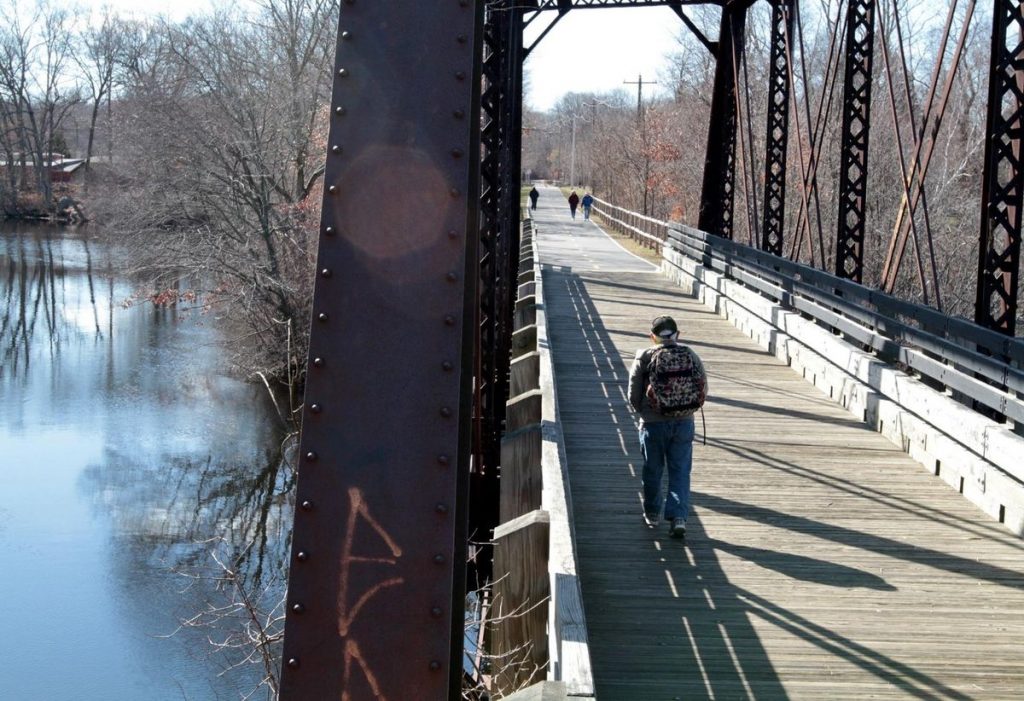 The railroad, now a rail trail, I briefly crossed on my walk.
