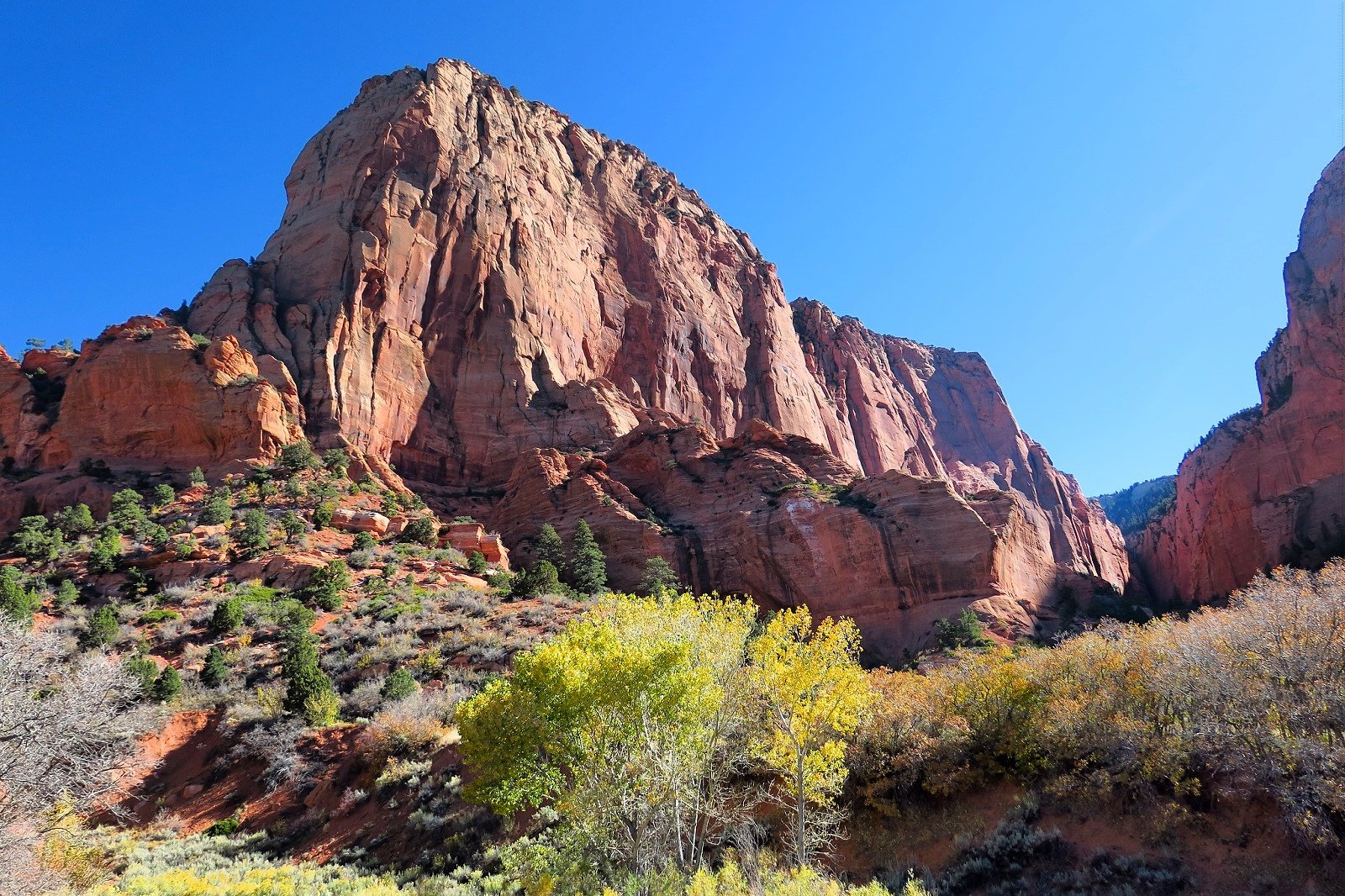 I entered the quiet (relatively!) Kolob Canyon entrance of Zion National Park. Less well-known than the Zion Canyon proper, the red rock walls and formations were stunning.