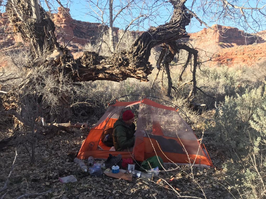 We arrived back at our camp near sunset. A long day not mileage-wise but certainly timewise with the ambling up and down the canyons, looking into nooks and crannies, and savoring our time out here. As a friend pointed out, this area does not lend itself to thru-hiking style miles but seeing what we can see. And we took in quite a bit this day!