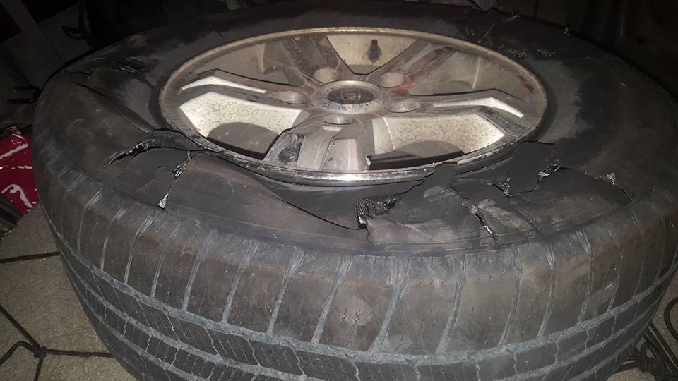 On the side of the road, the tire was changed. Oddly enough, I had planned on replacing the tires THIS week.